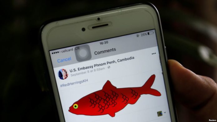 Bị cáo buộc là âm mưu xúi giục nổi loạn với thủ lãnh đối lập Campuchia đang bị giam giữ, đại sứ quán Mỹ vừa đăng một bức ảnh của một con cá trích màu đỏ trên trang Facebook của mình.