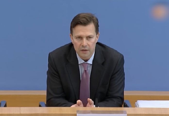 Phát ngôn viên chính phủ Đức Steffen Seibert công bố về việc Việt Nam xét xử ông Trịnh Xuân Thanh hôm 8.1.2018 tại buổi họp báo ở Berlin