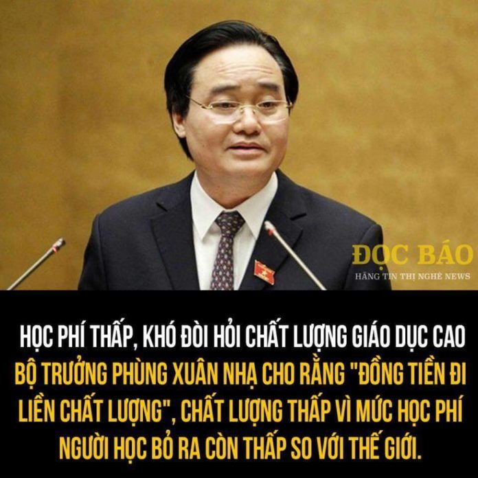 Một câu hỏi : giả thử ngân sách giáo dục VN tăng gấp đôi, học phí tăng gấp đôi, hậu quả sẽ ra sao ? Lương giáo chức có tăng gấp hai, trường học chuồng bò có sạch sẽ hơn, chất lương giáo dục có được cải thiện, chương trình nhồi sọ có giảm bớt ?. Hay dinh cơ của các quan sẽ lớn gấp đôi, nhà cửa mua ở ngoại quốc sẽ sang trọng hơn ( ”đồng tiền đi liền với chất lượng” nhà cửa, dinh cơ của lãnh đạo ), và chuyện mua bán, gian lận trên đầu học sinh sẽ nhẩy thêm vài bước nữa ?