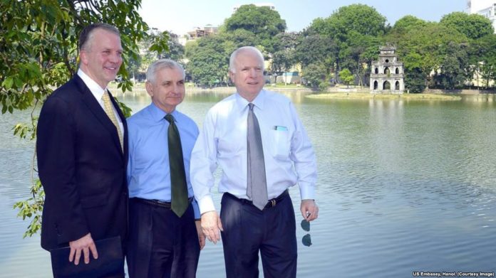 Đại sứ Việt Nam tại Hoa Kỳ, ông Hà Kim Ngọc, được Đài Tiếng nói Việt Nam dẫn lời nói rằng ông McCain là “biểu tượng của quá trình hòa giải của quan hệ Việt – Mỹ”.