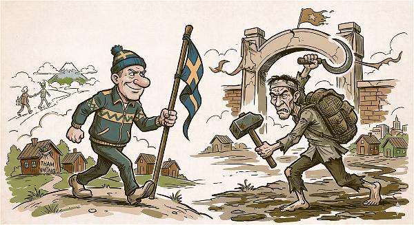 Trong nước, giới tuyên truyền rất thích đem Thụy Điển hay Na Uy ra làm ví dụ: “Các nước Bắc Âu cũng xã hội chủ nghĩa mà vẫn giàu.” Đó là cú lừa kiểu thấy sang bắt quàng làm họ. Thụy Điển có đa đảng, có báo chí độc lập, có tòa án giữ vai trò độc lập, và chính phủ có thể bị thay thế qua bầu cử cạnh tranh.³ Cùng mang chữ “xã hội”, nhưng nền tảng thể chế khác hẳn.