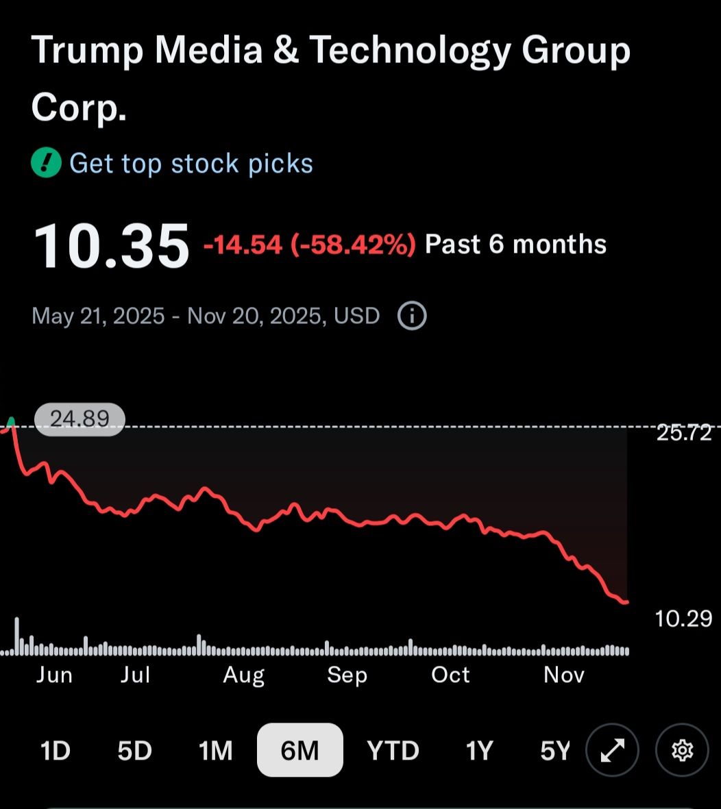Và khi phong trào đảo chiều, cổ phiếu DJT sập như tôn sụp trước bão.