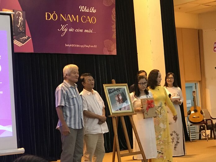 Ảnh: Chương trình “Nhà thơ Đỗ Nam Cao – Ký ức còn mãi” được tổ chức tại TP.HCM ngày 12.10.2023. Trong ảnh, từ trái sang: Nhà nhiếp ảnh Nguyễn Đình Toán, nhà báo Huỳnh Dũng Nhân, chị Trần Thu Hồng, NSND Trịnh Thúy Mùi.