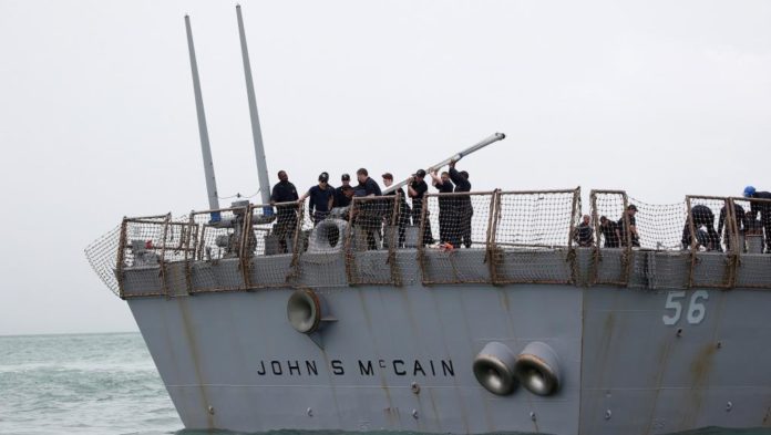 Tuy nhấn mạnh là không muốn suy đoán kết quả điều tra, nhưng tư lệnh đặc trách các chiến dịch của hải quân Mỹ, đô đốc John Richardson, đã không loại trừ một tác nhân bên ngoài hay một cuộc tấn công tin học đã gây ra vụ đụng tàu giữa khu trục hạm USS John S. McCain với một tàu chở dầu ở eo biển Singapore sáng sớm ngày 21/08/2017.