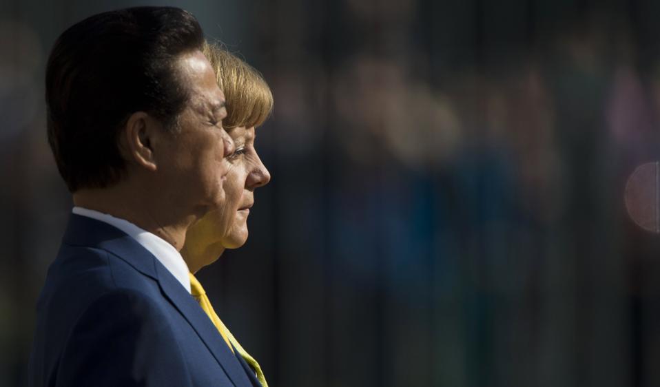 German Chancellor Angela Merkel (R) and Vietnamese Prime Minister Nguyen Tan Dung (JOHN MACDOUGALL/AFP/Getty Images)