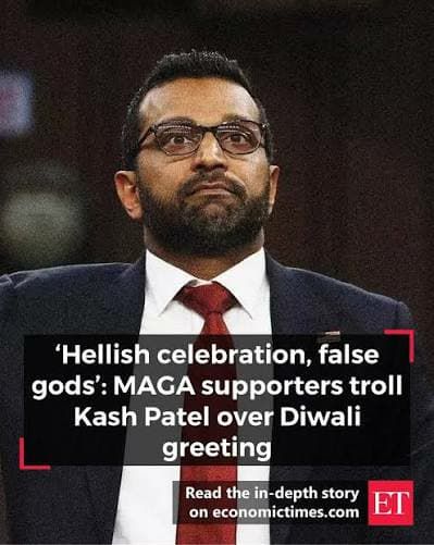 Hồi tuần trước, khi Giám đốc FBI Kash Patel đăng lên mạng xã hội tấm ảnh tôn vinh ngày lễ hội ánh sáng Diwali của Ấn Độ và là đức tin của ông ta, mẩu đăng này gặp sự phản ứng mạnh mẽ trong thế giới MAGA.
