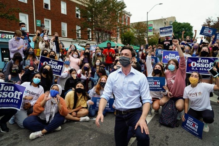Ông Jon Ossoff, thuộc Đảng Dân chủ, đang tiến tới cuộc tranh cử tái đấu sau khi Thượng Nghị sĩ David Perdue không giành được đa số phiếu để tái cử. Nicole Craine | The New York Times.