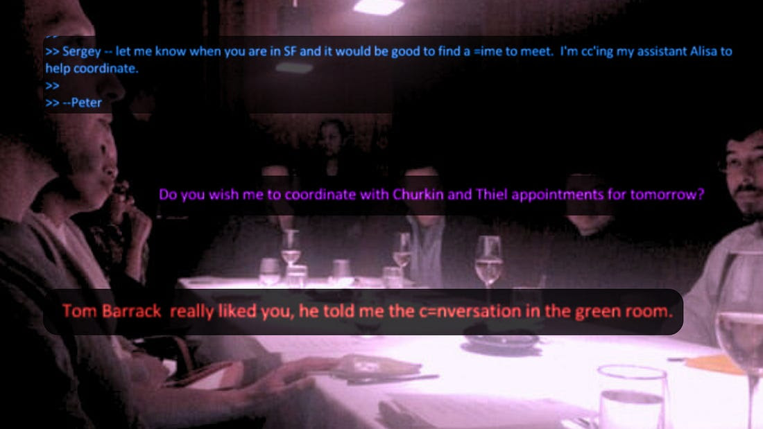 Email ngày 3 tháng 10 năm 2016 của Groff là bằng chứng nổi bật nhất trong loạt thư từ này — không phải vì nó chứng minh sự phối hợp giữa Thiel và Điện Kremlin, mà vì nó bình thường hóa sự gần gũi đó. “Churkin? Thiel?” nghe giống như một cuộc trao đổi lịch trình thường lệ.