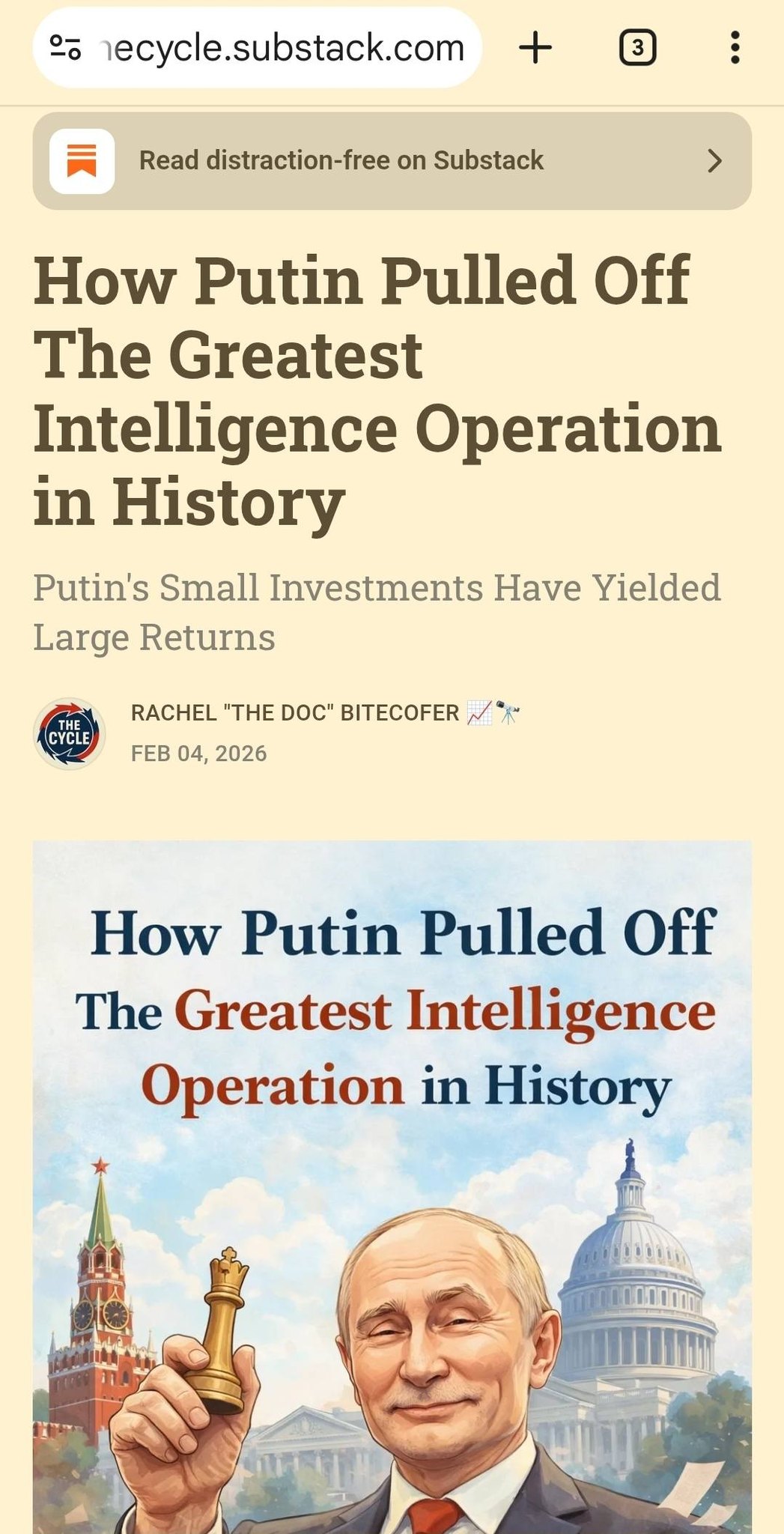 Putin—cựu sĩ quan KGB, người cả đời nghiên cứu về sự sụp đổ của nhà nước—đang xem người Mỹ phá vỡ cơ quan lập pháp của chính họ trên truyền hình trực tiếp. Không có xe tăng Nga. Không có tấn công mạng. Không có tên lửa.