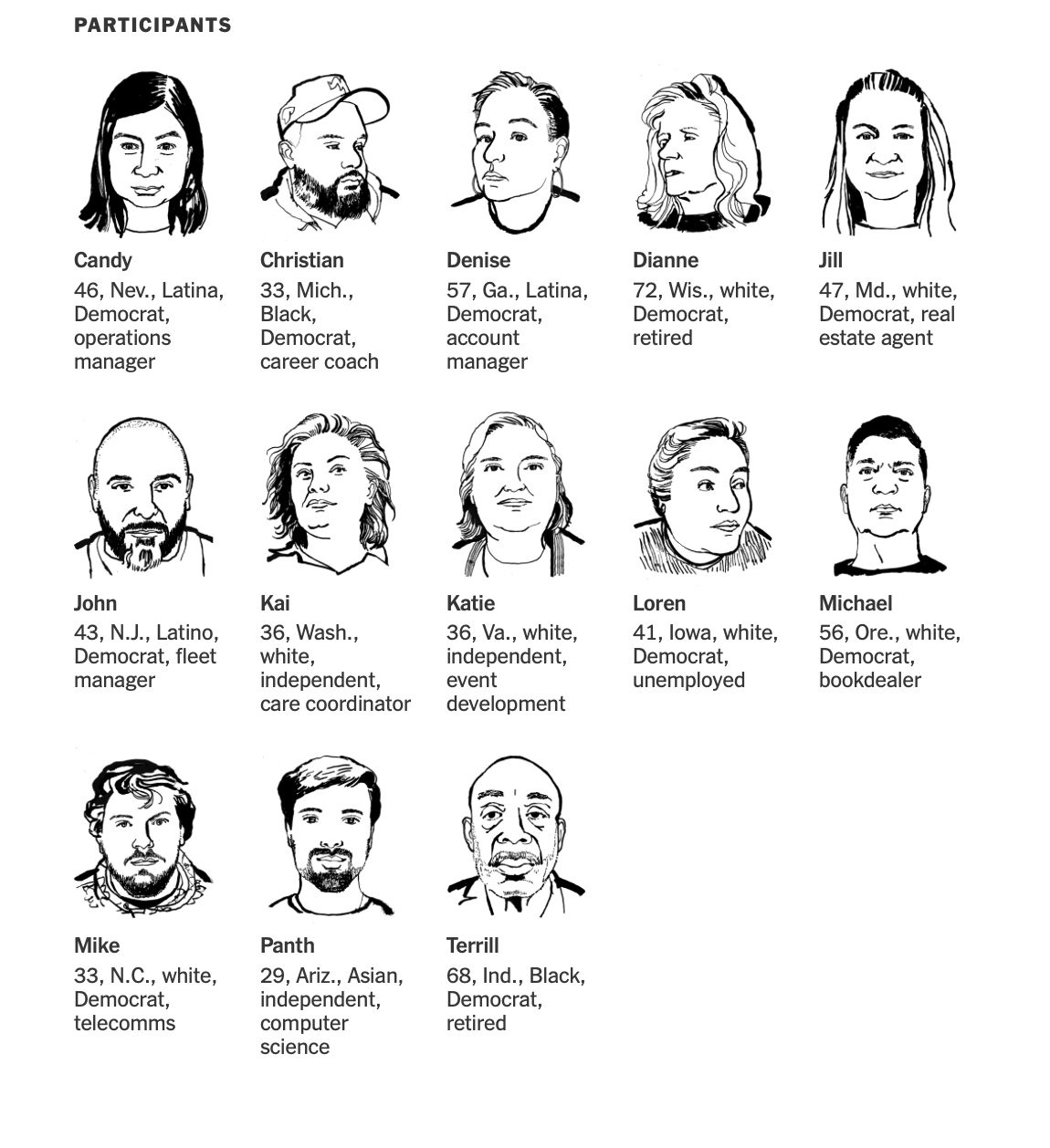Giữa những cuộc tranh luận lớn giữa các nhà hoạt động, chuyên gia và quan chức được bầu về hướng đi mà đảng nên theo, chuyên mục Ý kiến của báo Times đã tập hợp 13 cử tri thuộc đảng Dân chủ và có xu hướng ủng hộ đảng Dân chủ để hỏi về cách đảng đang xử lý tình hình hiện tại, những thay đổi và ưu tiên lại nào họ muốn thấy, và những kiểu đảng viên Dân chủ nào đang nổi bật.