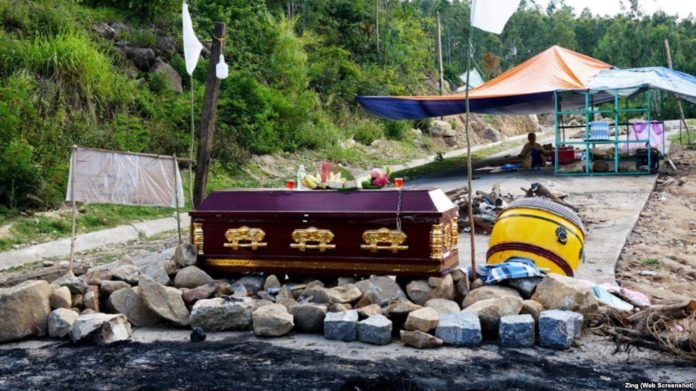 Những hình ảnh chỉ có trong thiên đường xã hội chủ nghĩa VN: Người dân Quảng Ngãi tiếp tục mang quan tài chặn đường phản đối nhà máy xử lý rác.