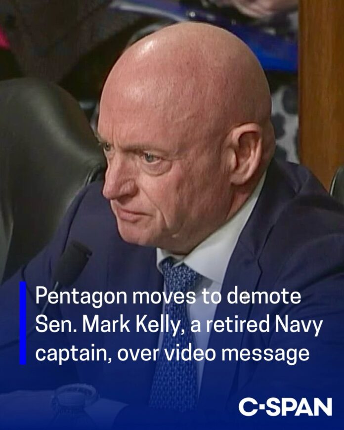 Bộ trưởng Quốc phòng Pete Hegseth hôm thứ Hai thông báo rằng quân đội Hoa Kỳ đã khởi động các thủ tục hành chính đối với Thượng nghị sĩ Mark Kelly (Dân chủ – Arizona). Các thủ tục này có thể dẫn tới việc hạ cấp quân hàm hưu trí và cắt giảm lương hưu quân đội của ông Kelly, liên quan đến việc ông tham gia một đoạn video kêu gọi quân nhân từ chối các mệnh lệnh bất hợp pháp.