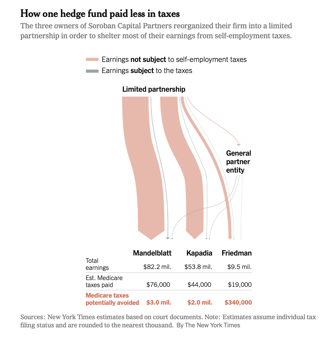 Ba chủ sở hữu của Soroban Capital Partners đã tái cấu trúc công ty của họ thành công ty hợp danh hữu hạn để tránh phần lớn thu nhập của họ khỏi thuế tự kinh doanh.