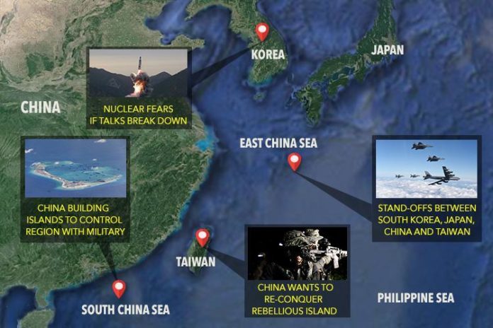 Trong khi đó, khu vực biển về phía đông của Trung Quốc [trên Biển Hoa Đông], tình hình cũng tương tự, nếu không nói là đáng lo ngại hơn.