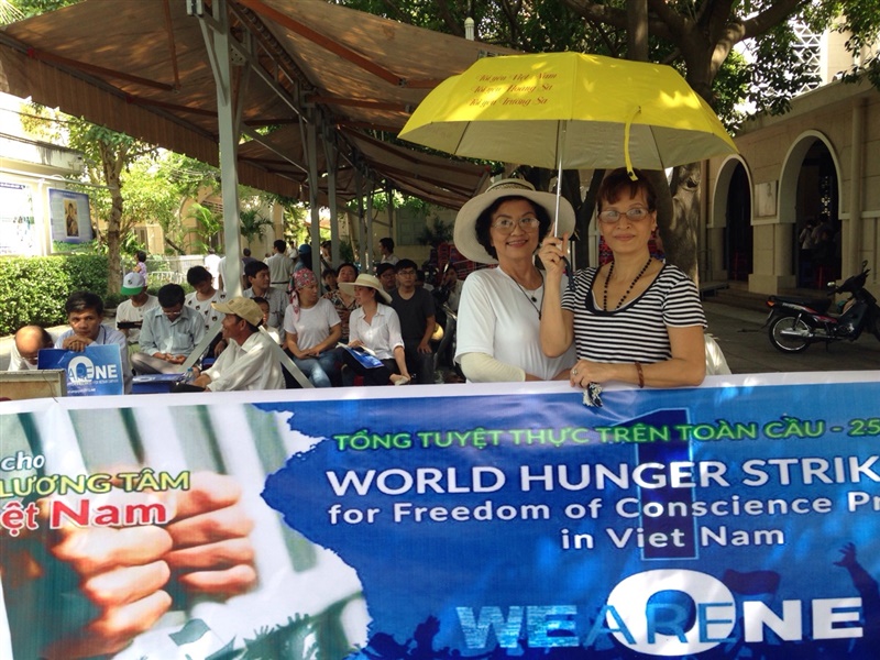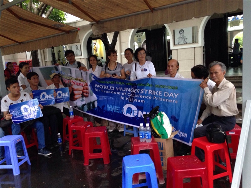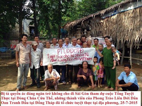 Sáng ngày 25/7/2015 mặc dù bị côn an, côn đồ ngăn chặn nghiêm ngặt, nhưng những người dân oan từ các tỉnh vẫn quyết tâm về Sài Gòn để tham gia buổi Tổng Tuyệt Thực tranh đấu cho tự do, dân chủ, nhân quyền. Một trong những hình ảnh đẹp và ý nghĩa trong đoàn tuyệt thực…