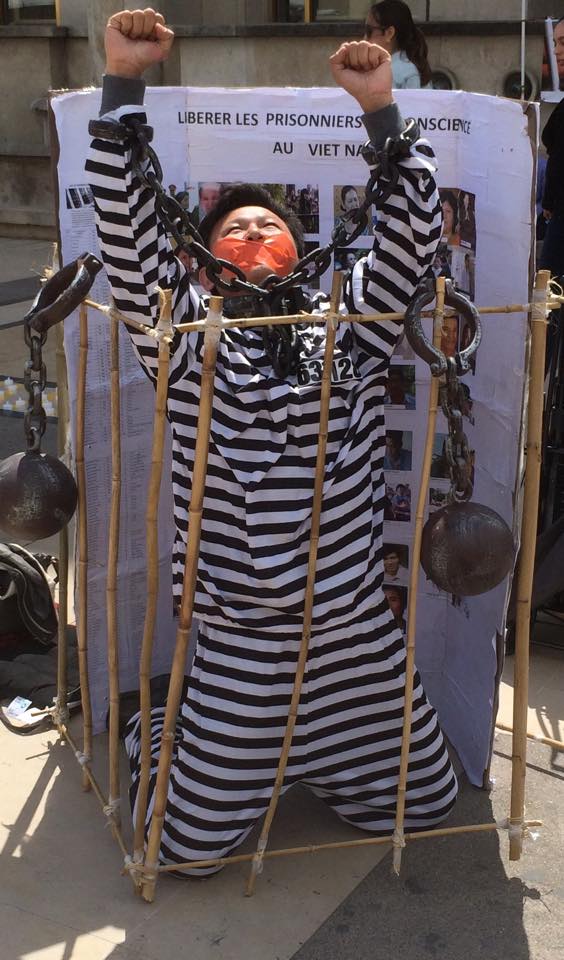 Thế nhưng, nơi đất mẹ của chúng ta, nhân quyền là một thứ quyền bị ràng buột với chủ nghĩa, đảng tính. Nhân quyền là một thứ quyền “ban” và “cho”, là một chủ đề vô cùng nhạy cảm trong đời sống thường ngày. Hãy nhìn lại con số tù nhân lương tâm ở Việt Nam, với dân số hơn 90 triệu, có 130 người tù chính trị mà chúng tôi thu thập được, và rất nhiều cá nhân đang bị trù dập, bị bao vây đời sống cơm áo, bị quan sát ngày đêm, bị đánh đập tàn nhẫn, vì dám sử dụng quyền con người lên tiếng đòi công lý, lên tiếng bảo vệ chủ quyền quốc gia. Từ năm 2005 tới 2015, tức 10 năm qua, chính quyền CSVN đã tuyên án gần 1,000 năm tù cho các chiến sĩ dân chủ, thì đó là một con số khủng khiếp.