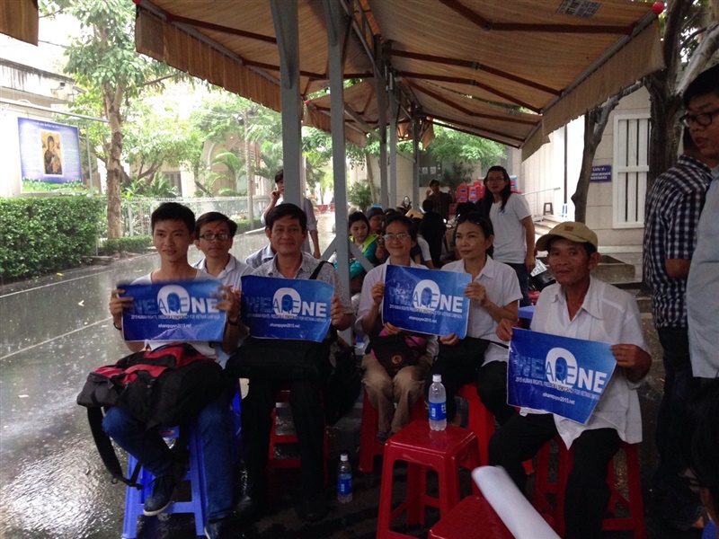 Mặc dù bị công an chốt chặn, canh gác nhưng từ 8 giờ sáng, đã có hơn 60 người gồm những nhà bảo vệ nhân quyền, bloggers, Facebookers và dân oan ở nhiều tỉnh, thành tập trung tại Nhà thờ Đức Mẹ Hằng Cứu Giúp, Dòng Chúa Cứu Thếtại Gài Gòn.