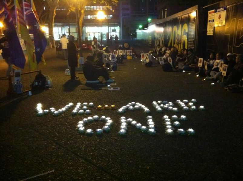 Tại Úc Châu, từ tối hôm trước những bản cầm tay tranh đấu cho các tù nhân lương tâm và nước uống cho người tuyệt thực đã được chuẩn bị chu đáo: