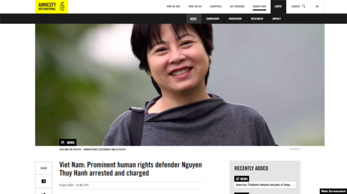 Bà Hạnh cũng bị bắt trong bối cảnh Việt Nam có thủ tướng mới, bộ trưởng ngoại giao mới và Quốc hội mới sẽ được bầu ra vào ngày 23/5/2021.